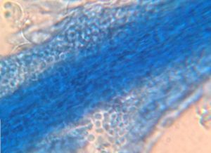 Fig. 9: Pelo esporulado teñido. MVZ. Renato Ordoñez.